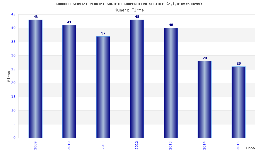 | Anno | Firme | Importi | Media | Naz. | Reg. | Prov. | Comu. |