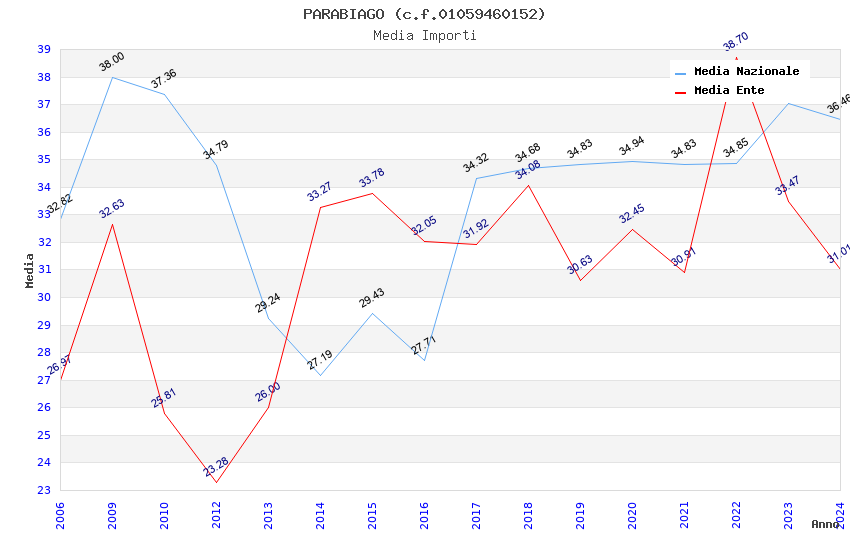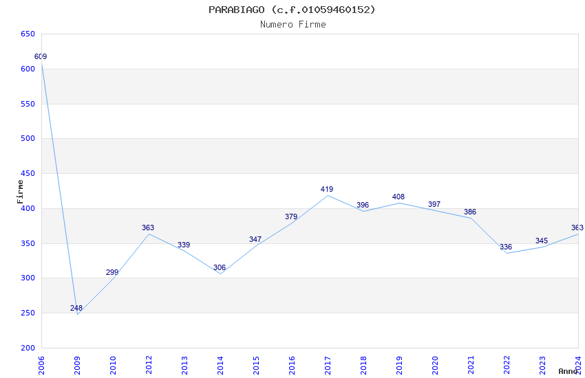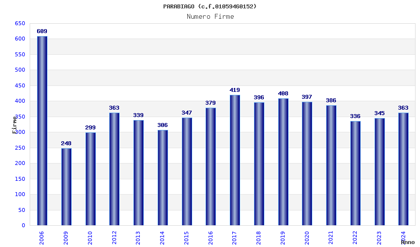 | Anno | Firme | Importi | Media | Naz. | Reg. | Prov. | Comu. |