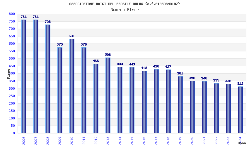 | Anno | Firme | Importi | Media | Naz. | Reg. | Prov. | Comu. |