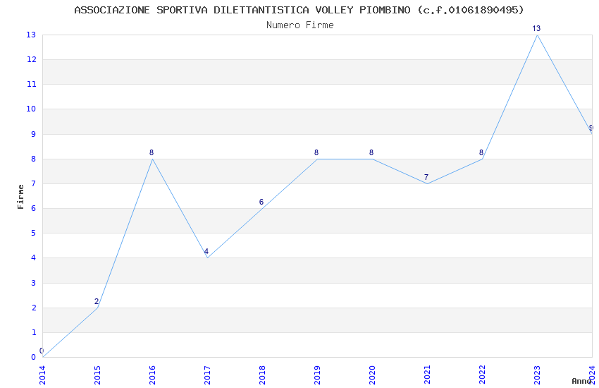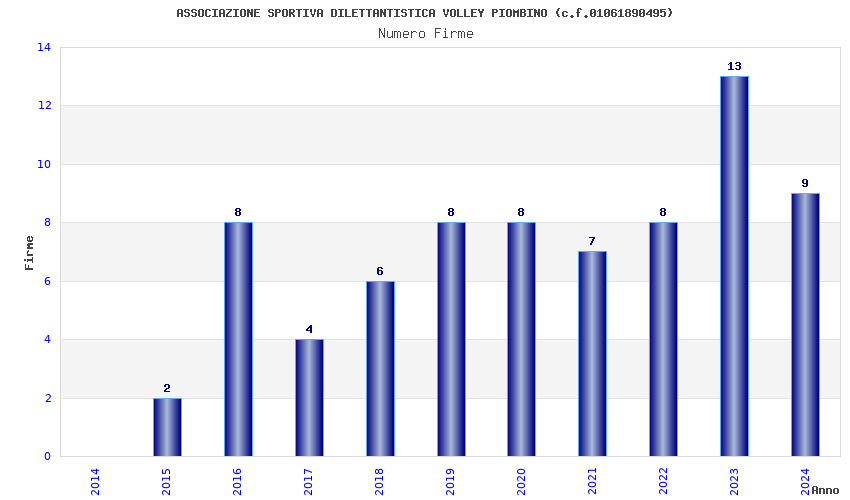 | Anno | Firme | Importi | Media | Naz. | Reg. | Prov. | Comu. |