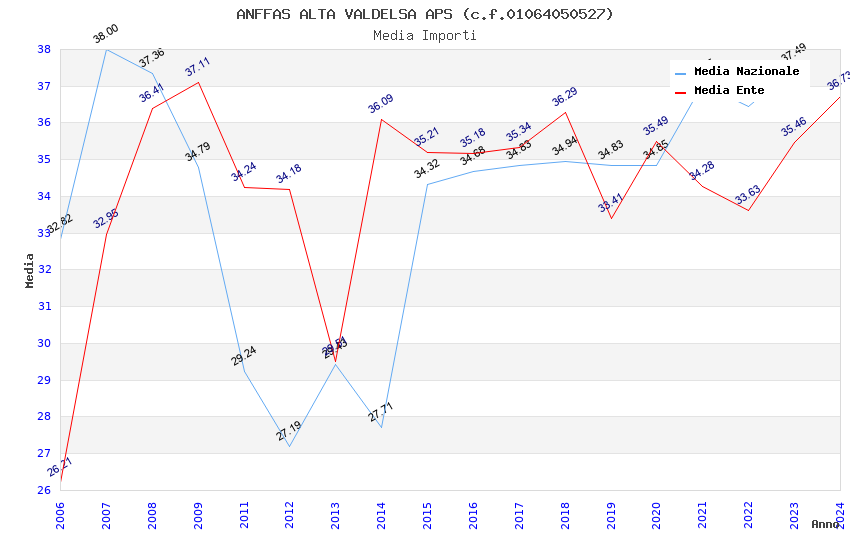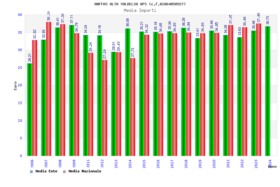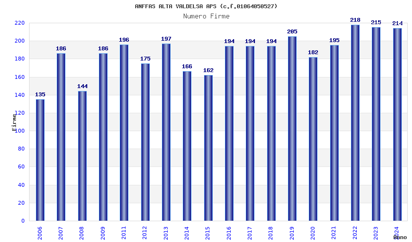 | Anno | Firme | Importi | Media | Naz. | Reg. | Prov. | Comu. |