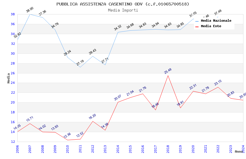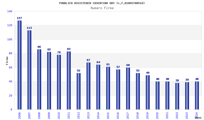 | Anno | Firme | Importi | Media | Naz. | Reg. | Prov. | Comu. |