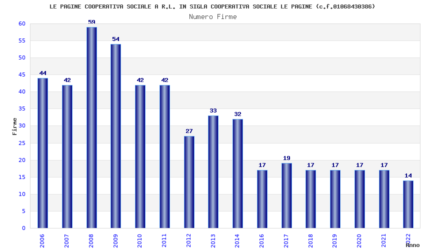 | Anno | Firme | Importi | Media | Naz. | Reg. | Prov. | Comu. |
