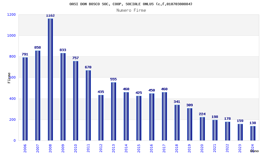 | Anno | Firme | Importi | Media | Naz. | Reg. | Prov. | Comu. |
