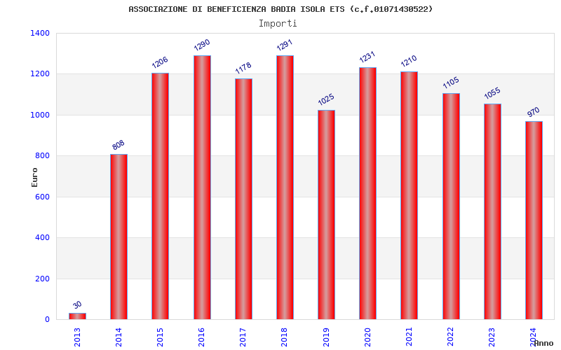 | Anno | Firme | Importi | Media | Naz. | Reg. | Prov. | Comu. |