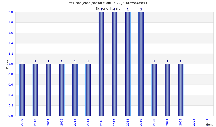 | Anno | Firme | Importi | Media | Naz. | Reg. | Prov. | Comu. |
