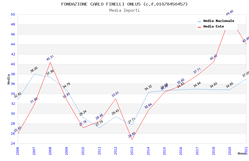 | Anno | Firme | Importi | Media | Naz. | Reg. | Prov. | Comu. |