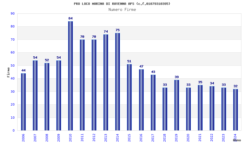 | Anno | Firme | Importi | Media | Naz. | Reg. | Prov. | Comu. |