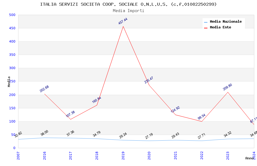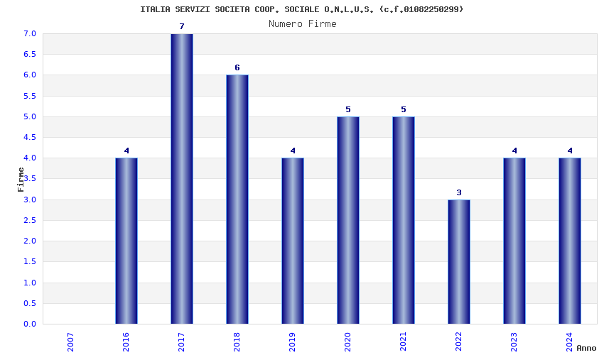 | Anno | Firme | Importi | Media | Naz. | Reg. | Prov. | Comu. |