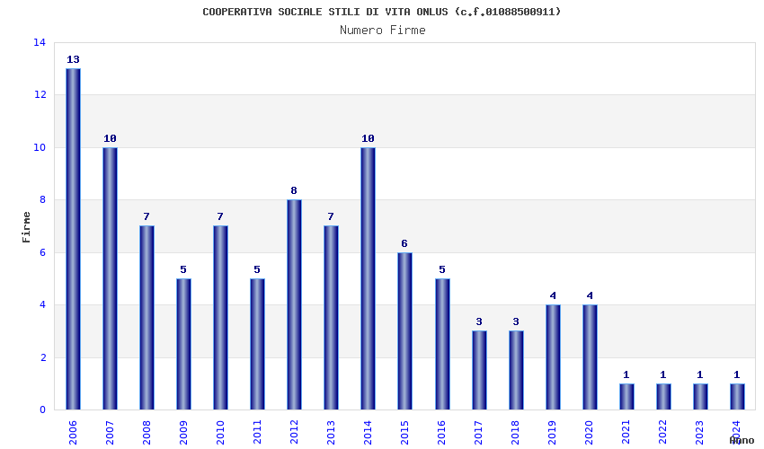 Anno Firme Importi Media Naz. Reg. Prov. Comu.