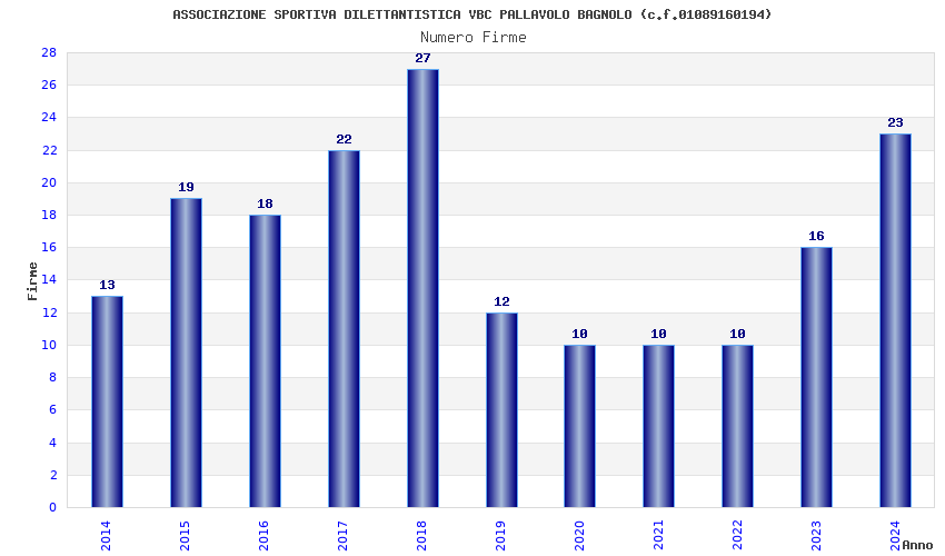 | Anno | Firme | Importi | Media | Naz. | Reg. | Prov. | Comu. |