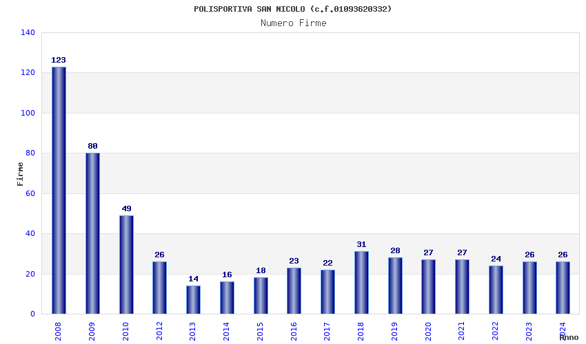 | Anno | Firme | Importi | Media | Naz. | Reg. | Prov. | Comu. |