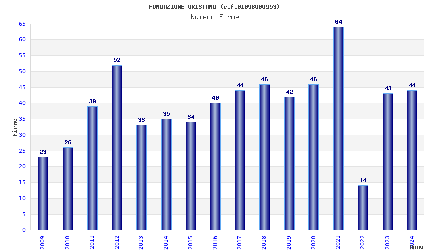 | Anno | Firme | Importi | Media | Naz. | Reg. | Prov. | Comu. |