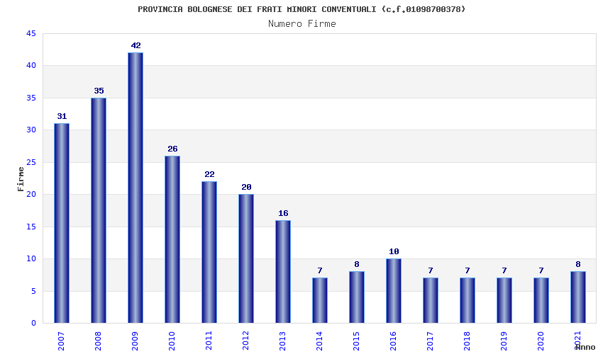 Anno Firme Importi Media Naz. Reg. Prov. Comu.