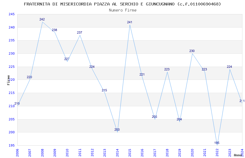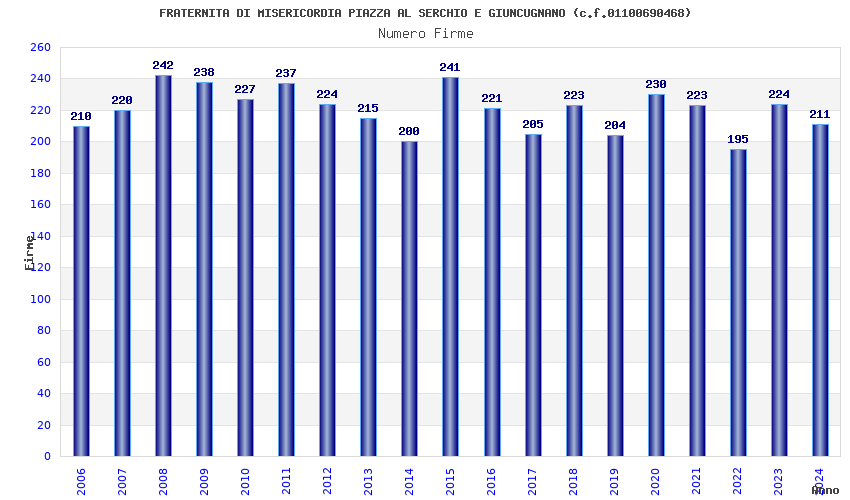 Anno Firme Importi Media Naz. Reg. Prov. Comu.