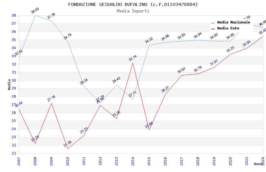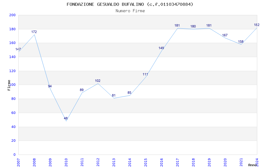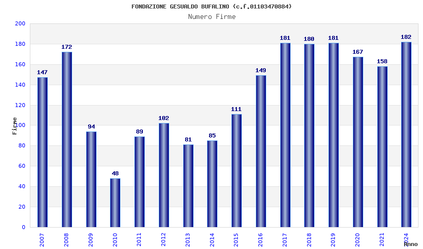 | Anno | Firme | Importi | Media | Naz. | Reg. | Prov. | Comu. |
