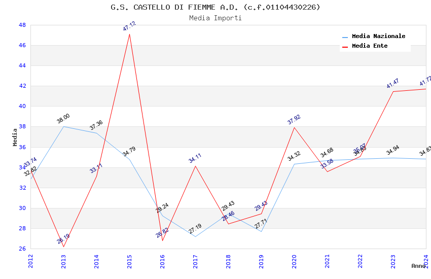 | Anno | Firme | Importi | Media | Naz. | Reg. | Prov. | Comu. |