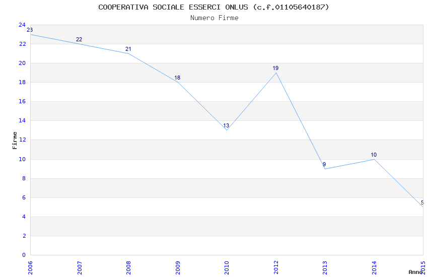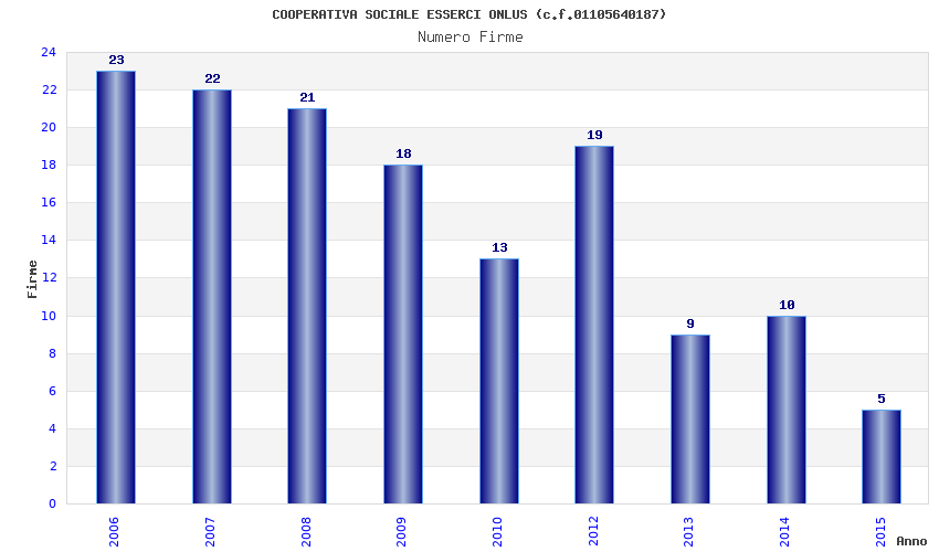 | Anno | Firme | Importi | Media | Naz. | Reg. | Prov. | Comu. |