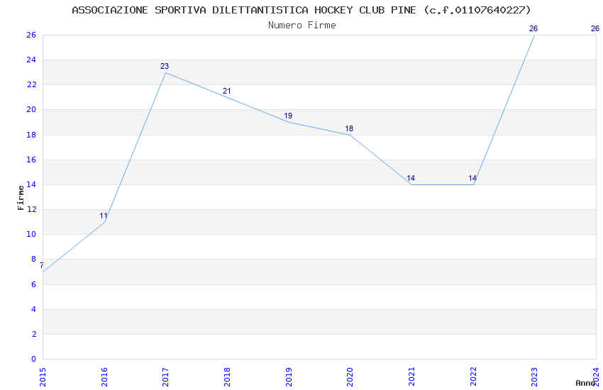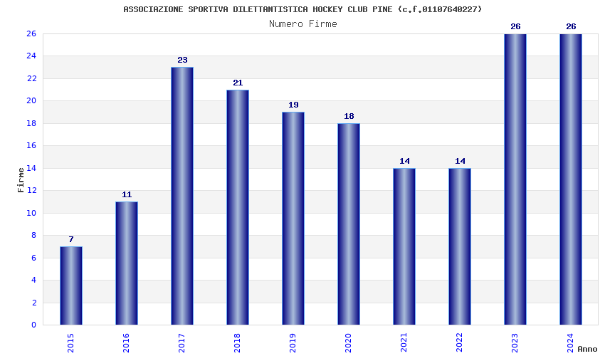| 2023 | 26 | 888,96 | 34,19 | 38.403 | 1.449 | 685 | 7 |