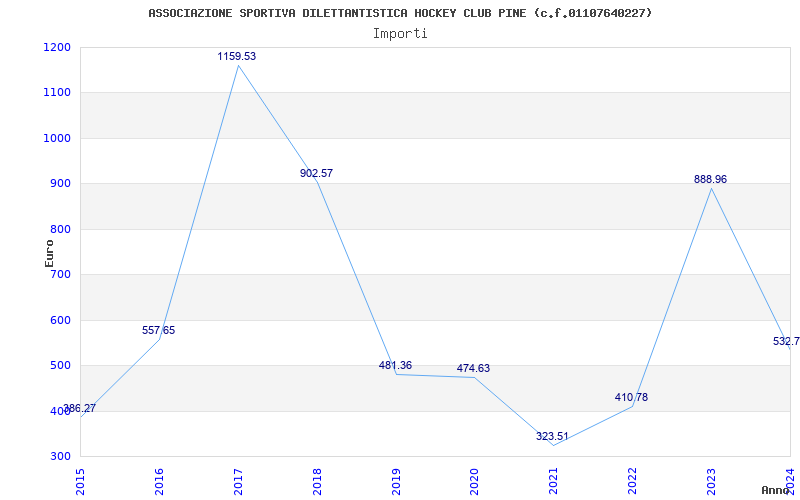 | 2021 | 14 | 323,51 | 23,11 | 53.565 | 2.096 | 1.050 | 8 |