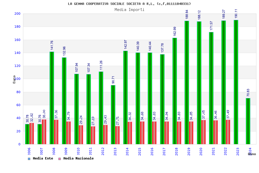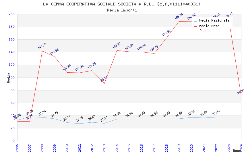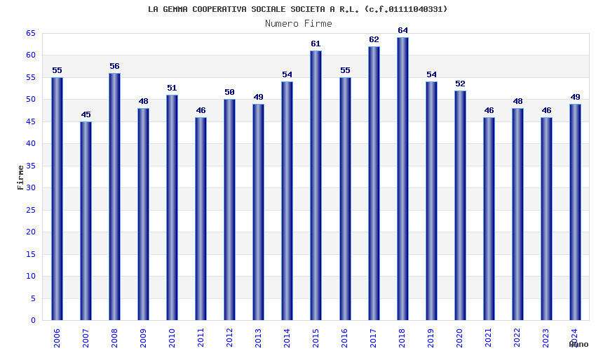 | Anno | Firme | Importi | Media | Naz. | Reg. | Prov. | Comu. |
