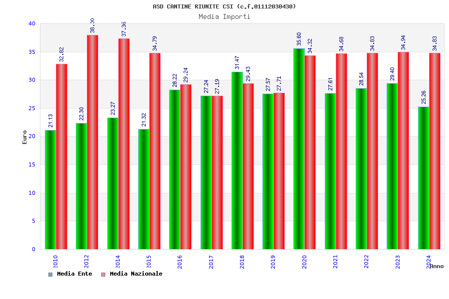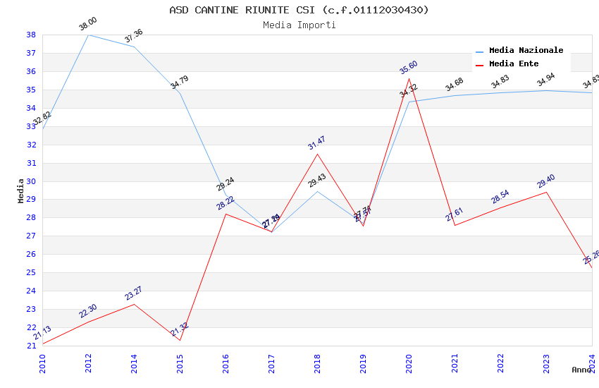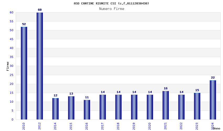 | Anno | Firme | Importi | Media | Naz. | Reg. | Prov. | Comu. |