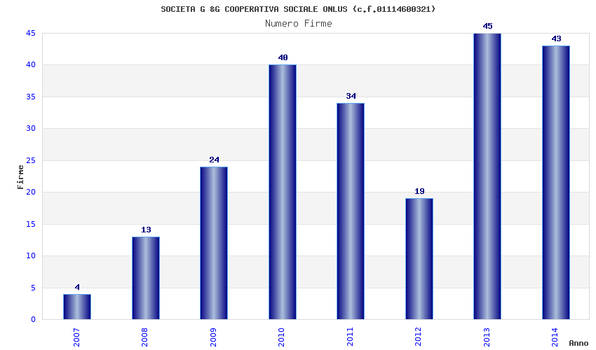 | Anno | Firme | Importi | Media | Naz. | Reg. | Prov. | Comu. |