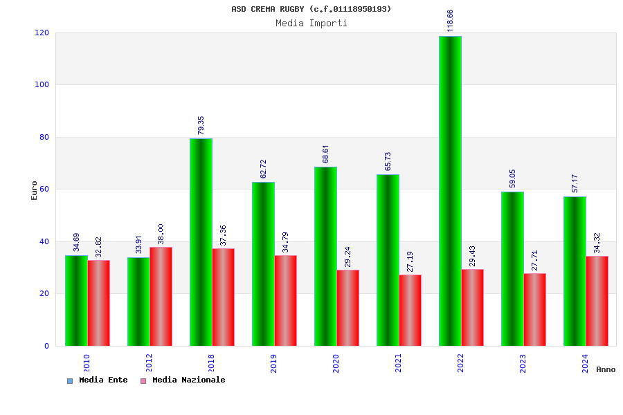 | Anno | Firme | Importi | Media | Naz. | Reg. | Prov. | Comu. |