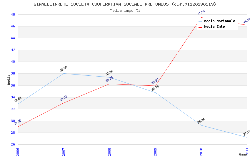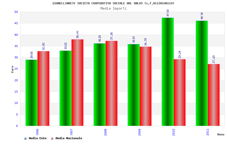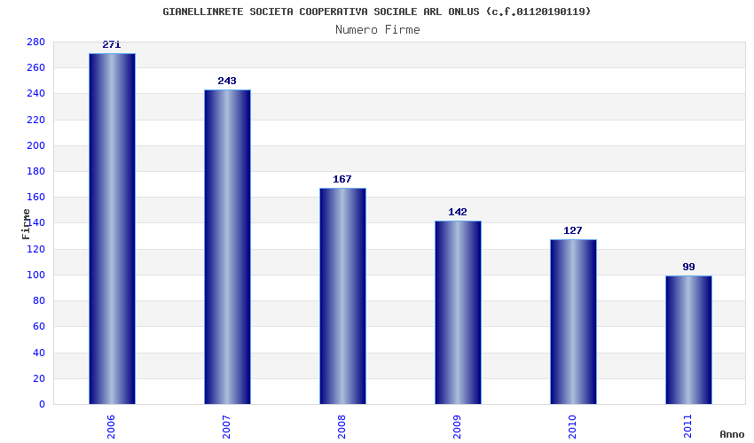 | Anno | Firme | Importi | Media | Naz. | Reg. | Prov. | Comu. |