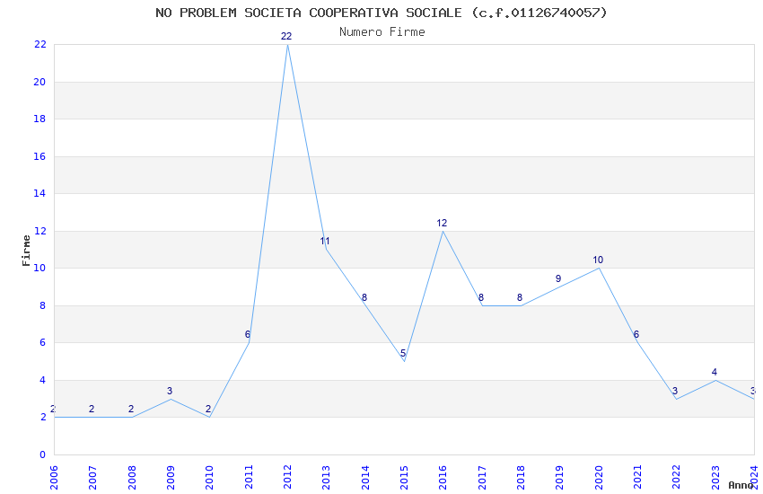 | 2012 | 22 | 458,72 | 20,85 | 34.580 | 3.144 | 152 | 41 |