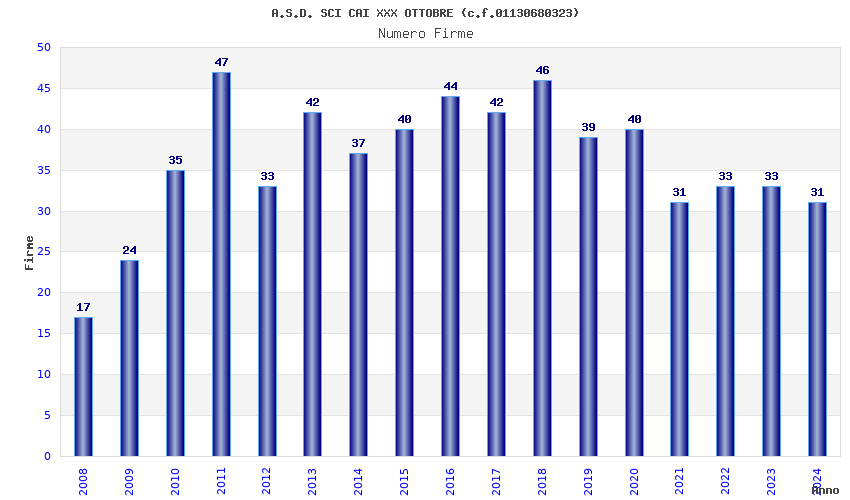 | 2017 | 42 | 4.045,92 | 96,33 | 13.521 | 276 | 59 | 53 |