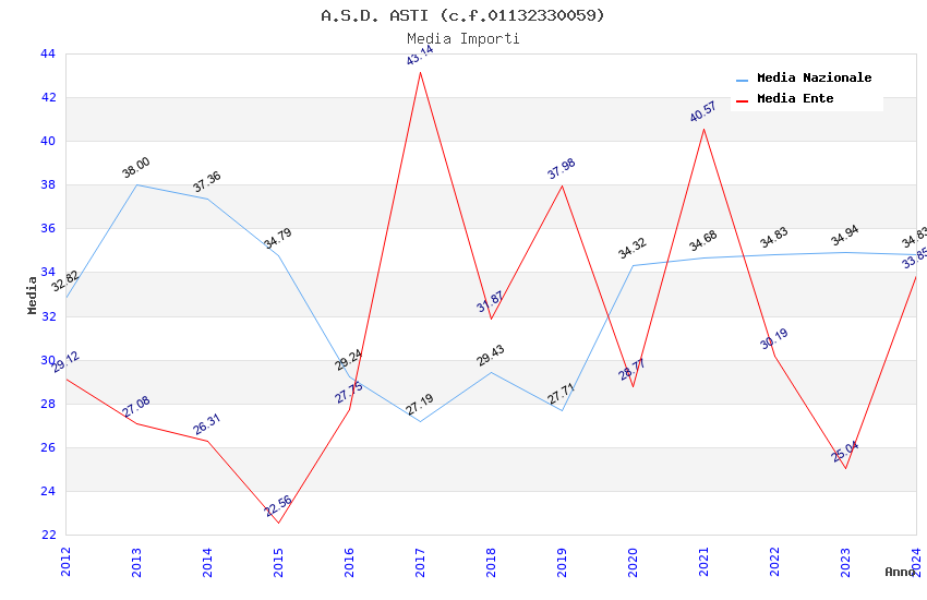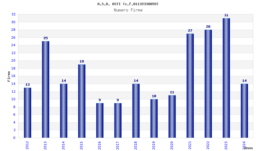 | Anno | Firme | Importi | Media | Naz. | Reg. | Prov. | Comu. |