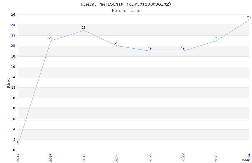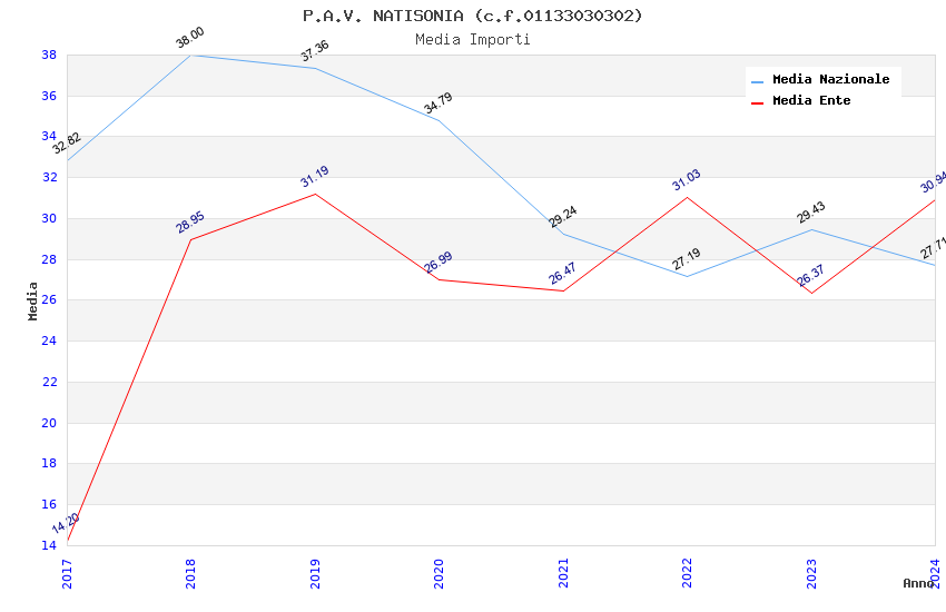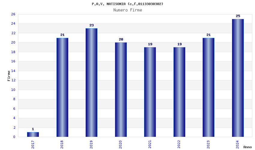 | Anno | Firme | Importi | Media | Naz. | Reg. | Prov. | Comu. |