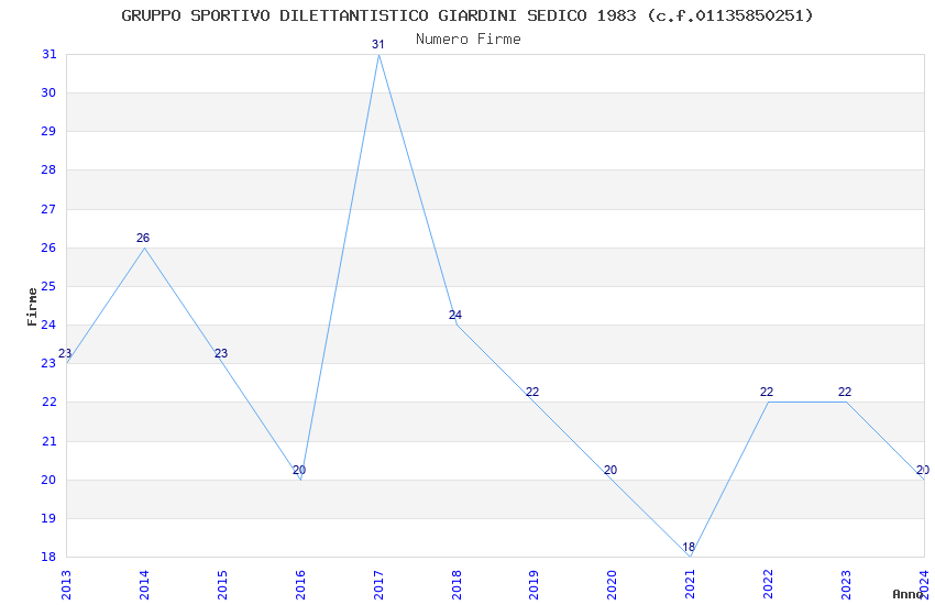 | 2013 | 23 | 457,55 | 19,89 | 35.642 | 3.353 | 219 | 11 |
