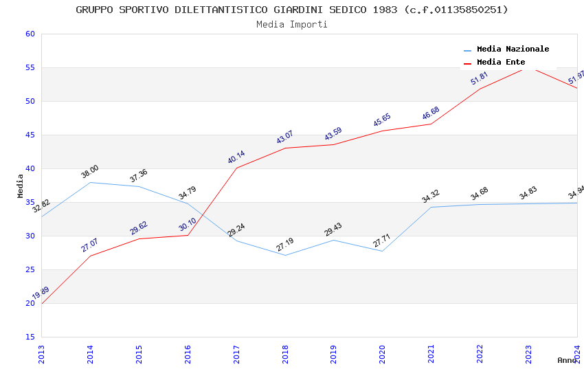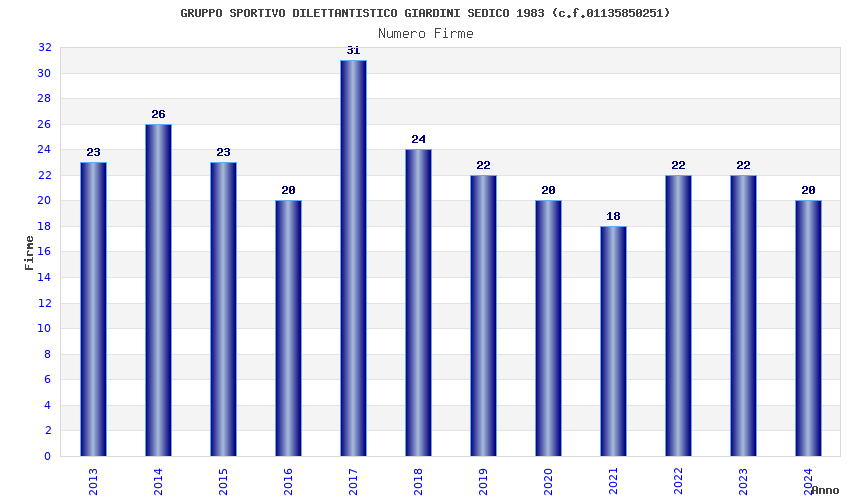 | Anno | Firme | Importi | Media | Naz. | Reg. | Prov. | Comu. |