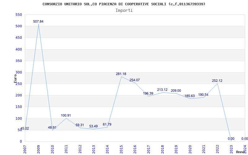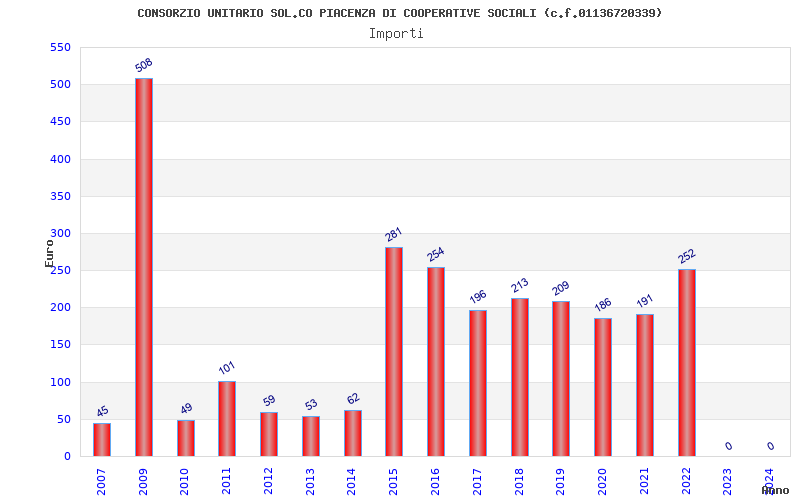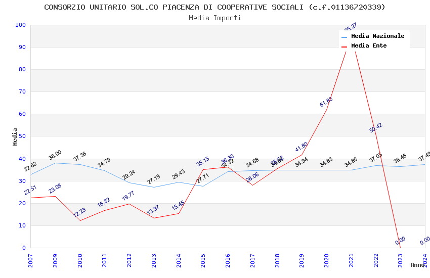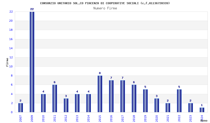 | Anno | Firme | Importi | Media | Naz. | Reg. | Prov. | Comu. |