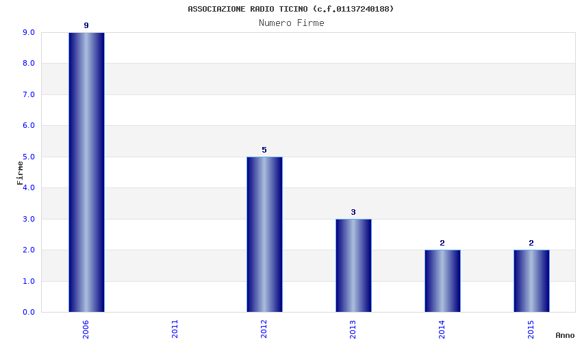 | Anno | Firme | Importi | Media | Naz. | Reg. | Prov. | Comu. |