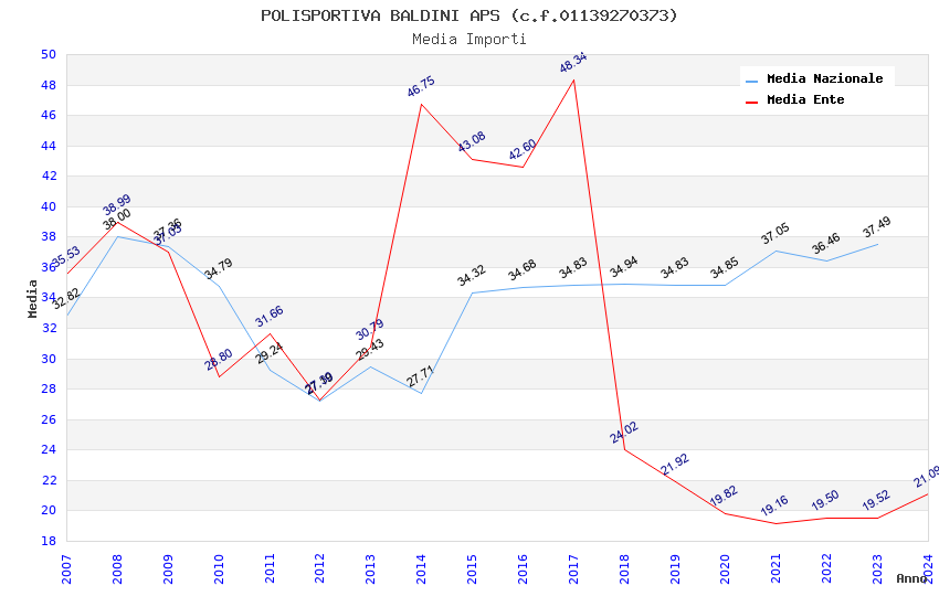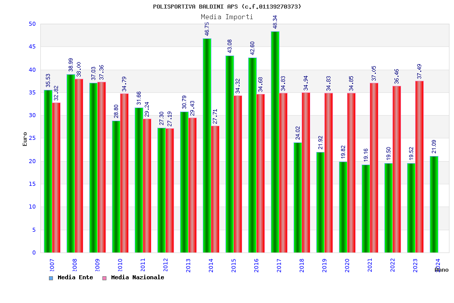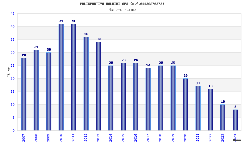 | Anno | Firme | Importi | Media | Naz. | Reg. | Prov. | Comu. |