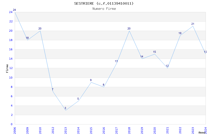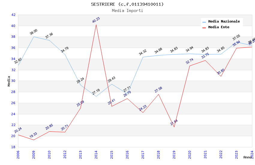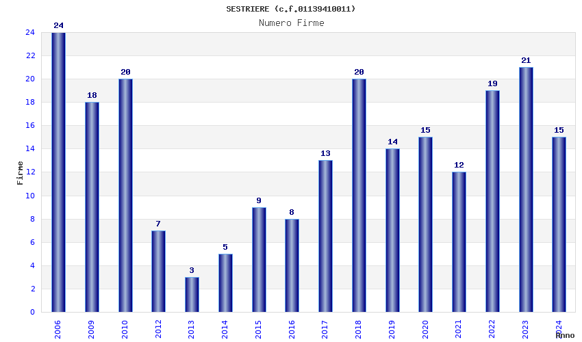| Anno | Firme | Importi | Media | Naz. | Reg. | Prov. | Comu. |