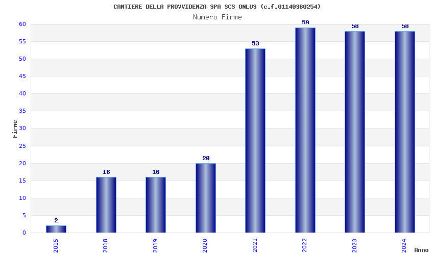 | Anno | Firme | Importi | Media | Naz. | Reg. | Prov. | Comu. |