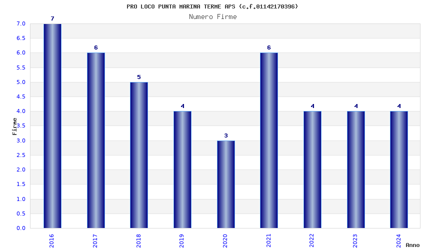 | Anno | Firme | Importi | Media | Naz. | Reg. | Prov. | Comu. |