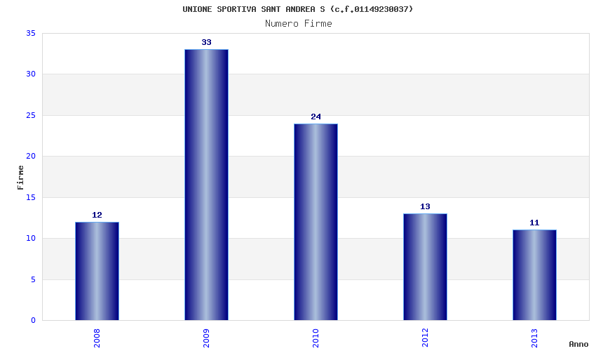 | Anno | Firme | Importi | Media | Naz. | Reg. | Prov. | Comu. |