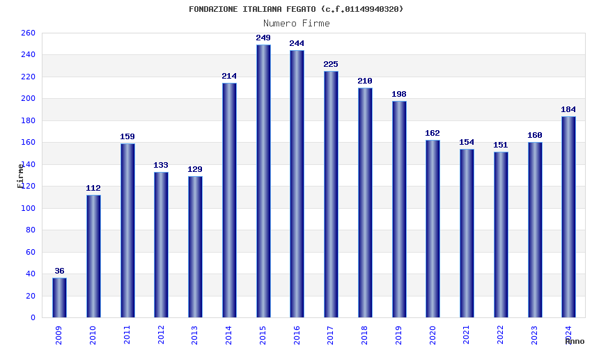 | Anno | Firme | Importi | Media | Naz. | Reg. | Prov. | Comu. |