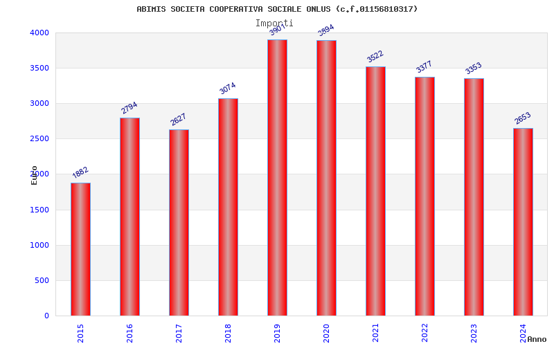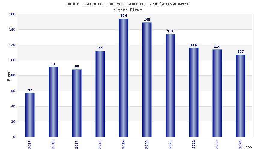 | Anno | Firme | Importi | Media | Naz. | Reg. | Prov. | Comu. |