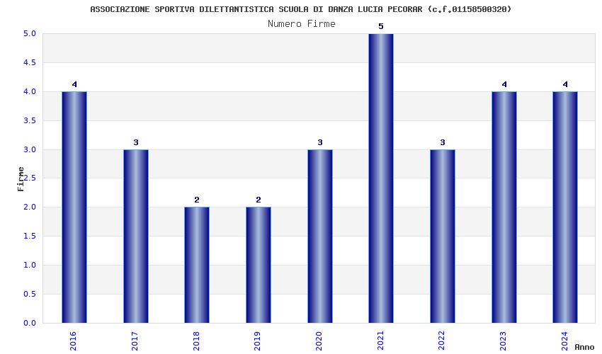 | Anno | Firme | Importi | Media | Naz. | Reg. | Prov. | Comu. |