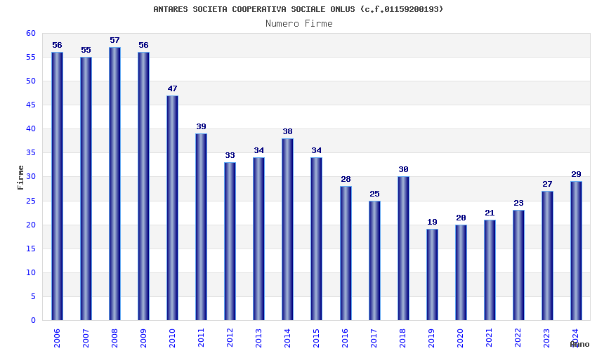 | Anno | Firme | Importi | Media | Naz. | Reg. | Prov. | Comu. |