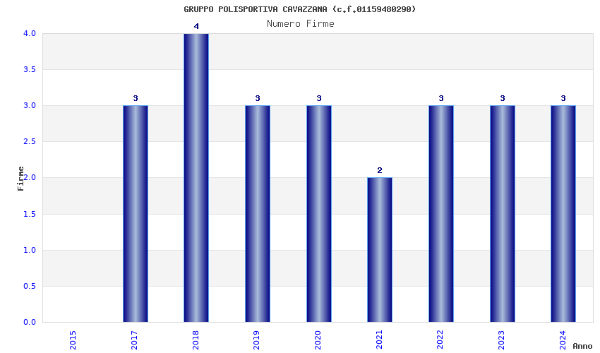 | Anno | Firme | Importi | Media | Naz. | Reg. | Prov. | Comu. |