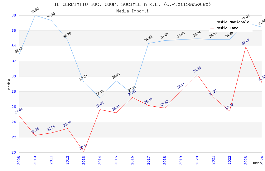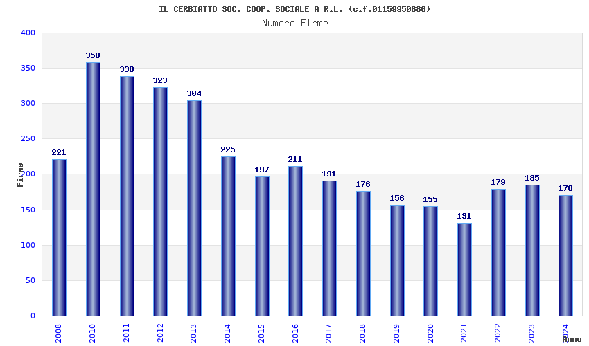 | Anno | Firme | Importi | Media | Naz. | Reg. | Prov. | Comu. |