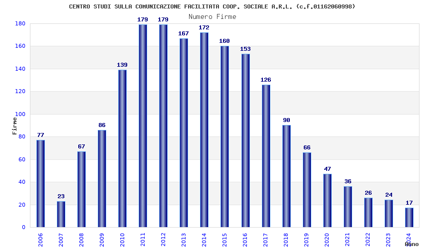 | Anno | Firme | Importi | Media | Naz. | Reg. | Prov. | Comu. |