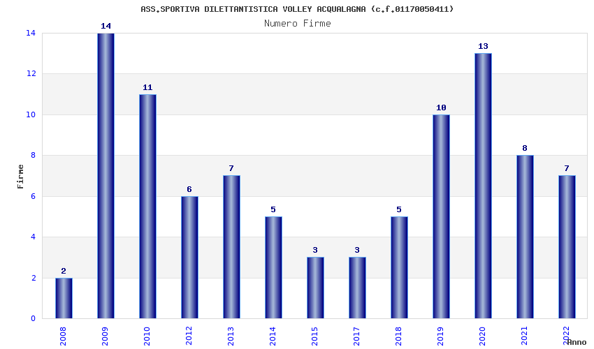| Anno | Firme | Importi | Media | Naz. | Reg. | Prov. | Comu. |